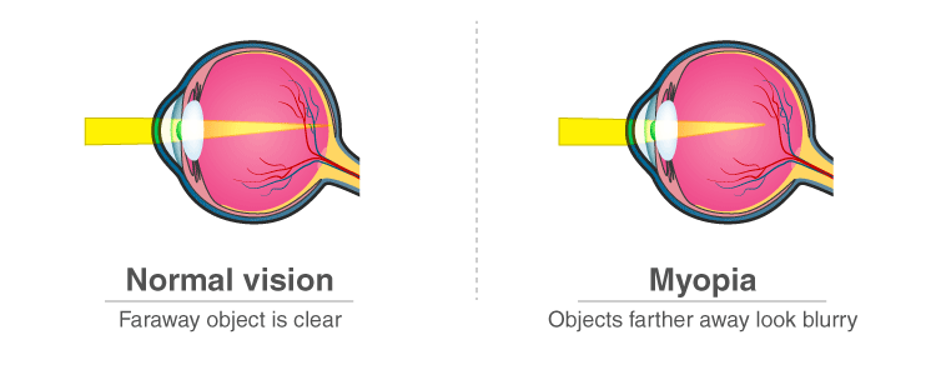 When our eyeball are longer than normal, the rays are focused before the retina.