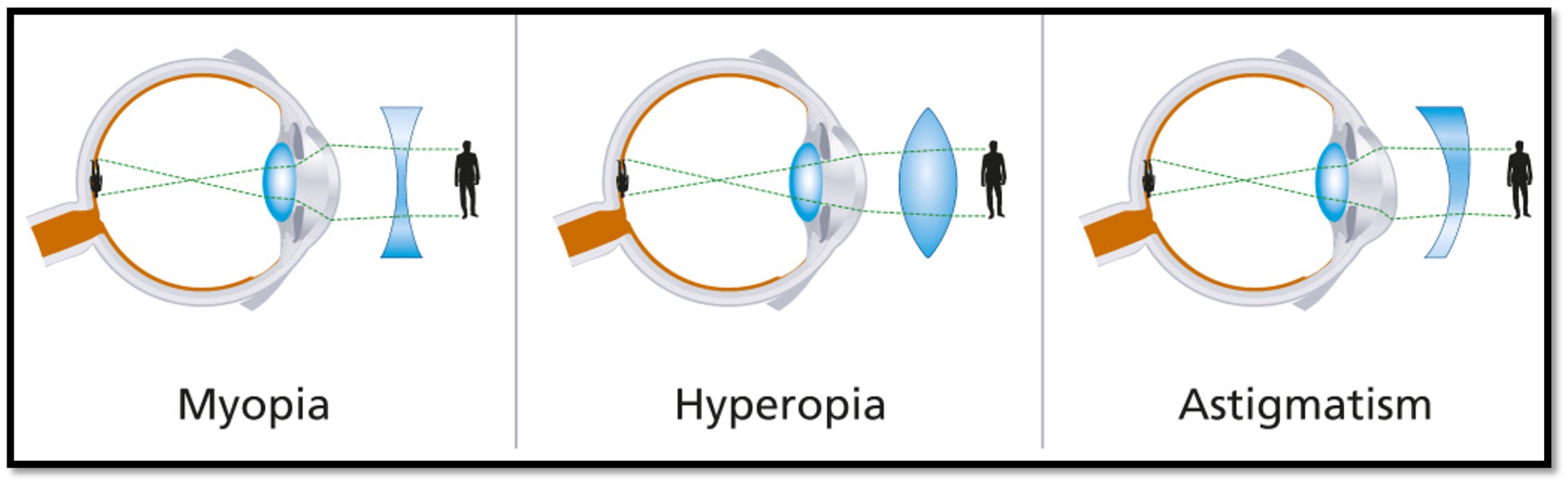 A person with refractive error , Their eyes are unable to focus the light on the retina (i.e., light rays focus either in front of or behind the retina) . This results in Blurring of vision