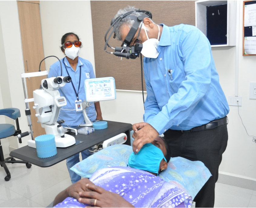 Using a visual acuity chart and a reading card, our eye specialist will assess the patient’s ability to see small details clearly at both near and far distances. Any refractive errors will be detected and corrective measures will be suggested using a combination of lenses. Eye specialist will systematically change the lens combination until a clear focus is obtained.