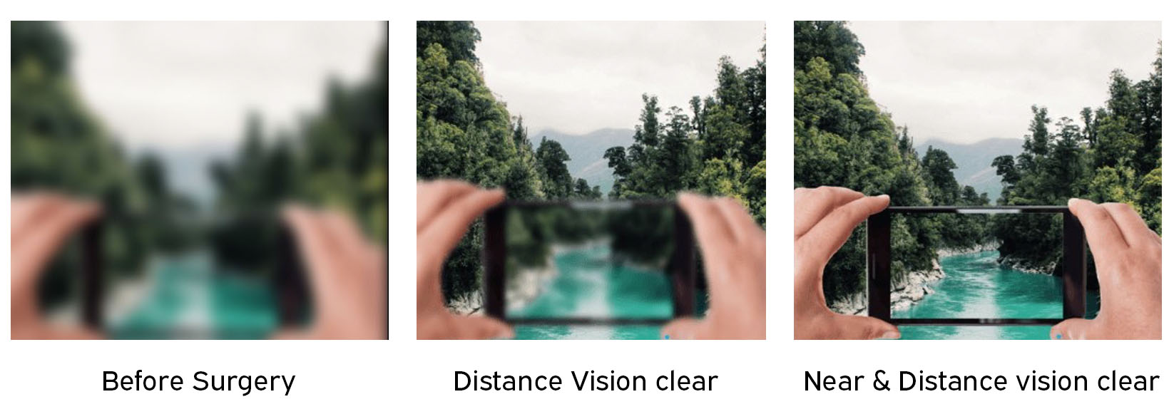 - These IOLs provide clear vision for all distances hence almost 90% of the day-to day activities can be performed without the need for additional glasses.