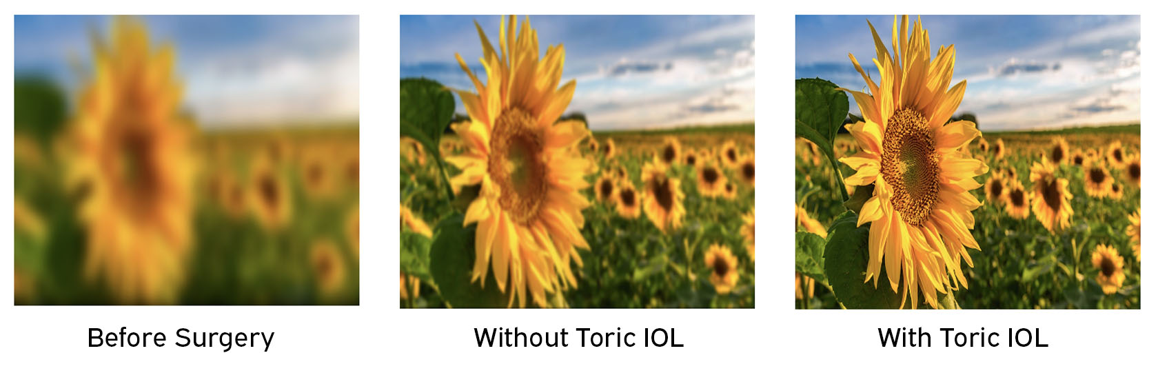 Toric lens correct the pre existing corneal astigmatism there by reducing the possibility of spectacle wear for distant vision post operatively.